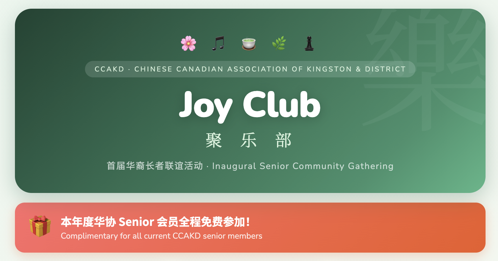 New Members: Go to this website https://events.ccakd.ca/event/1/chinese-new-year-potluck-2026 to get your tickets and join us! You can choose to pay directly online there or pay offline and get your tickets. If you choose offline payment, you can send e-transfer to [email protected] or pay at the potluck.